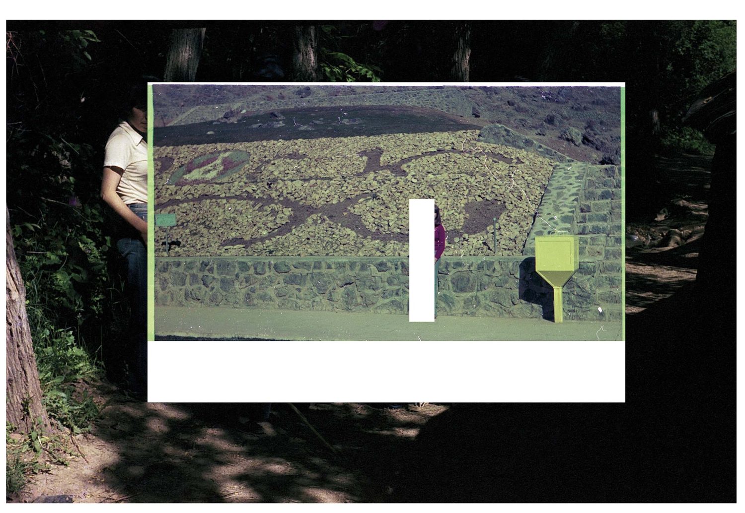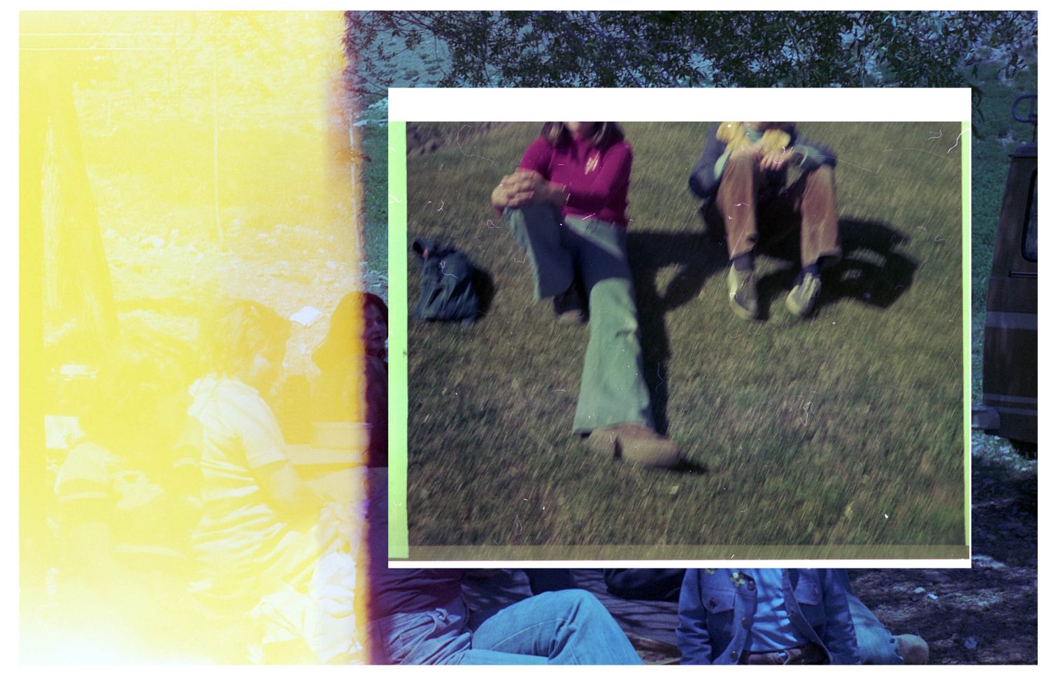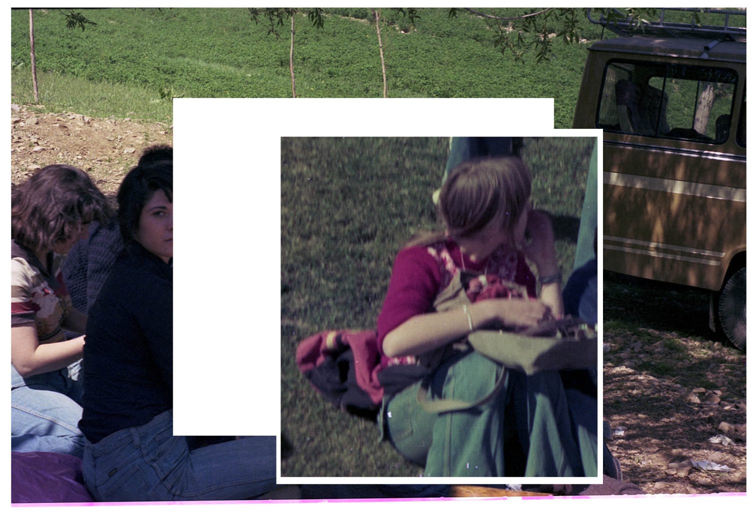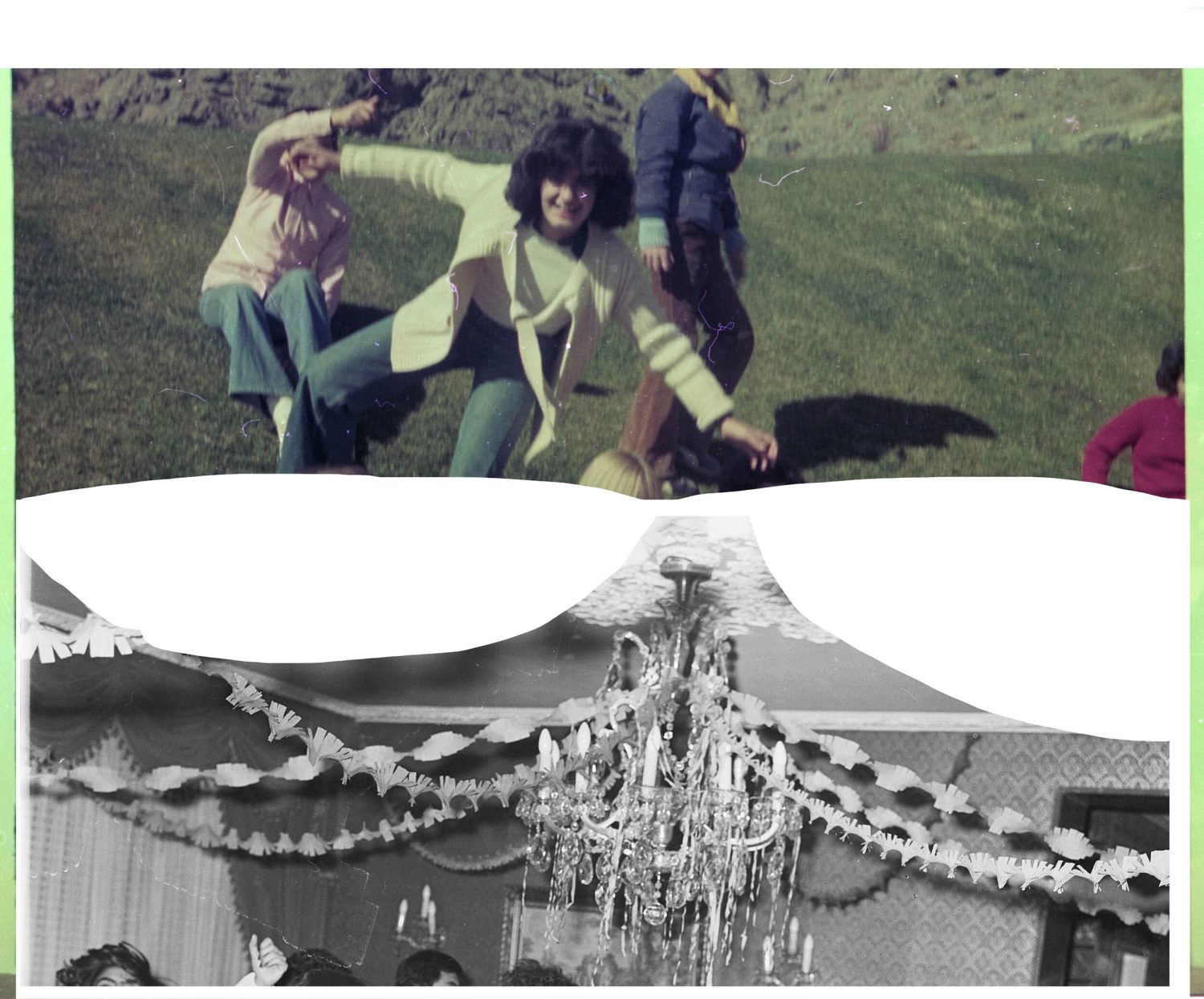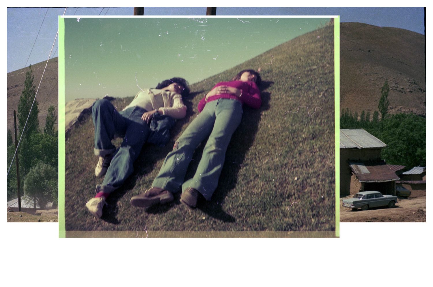 Dieses Projekt begann mit zwei Negativfilmen, die ich zufällig im Iran entdeckte. Beide stammen wahrscheinlich aus den 1970er Jahren, einer aus dem Iran und der andere aus Deutschland. Die Filmrollen erzählen zwei parallele Geschichten von Freude, Tanz, Entspannung im Gras und dem Bedürfnis nach Freiheit und Lachen. Diese Geschichten überschneiden sich hier und schaffen eine neue Bedeutung, die die Ähnlichkeiten trotz der geografischen Entfernung betont. Um diese Collagen zu erstellen, habe ich mich an die Anweisung auf dem Filmcover gehalten: »Schneiden Sie den Film nicht«. Statt zu schneiden, verdecke ich bestimmte Teile, um gemeinsame Gefühle hervorzuheben. Die Collagen bestehen aus handgefertigten C-Prints, die nur an den Rändern beschnitten wurden. Die Drucke wurden übereinandergelegt und gehängt, um die verbindenden Elemente der beiden Geschichten visuell zu betonen.