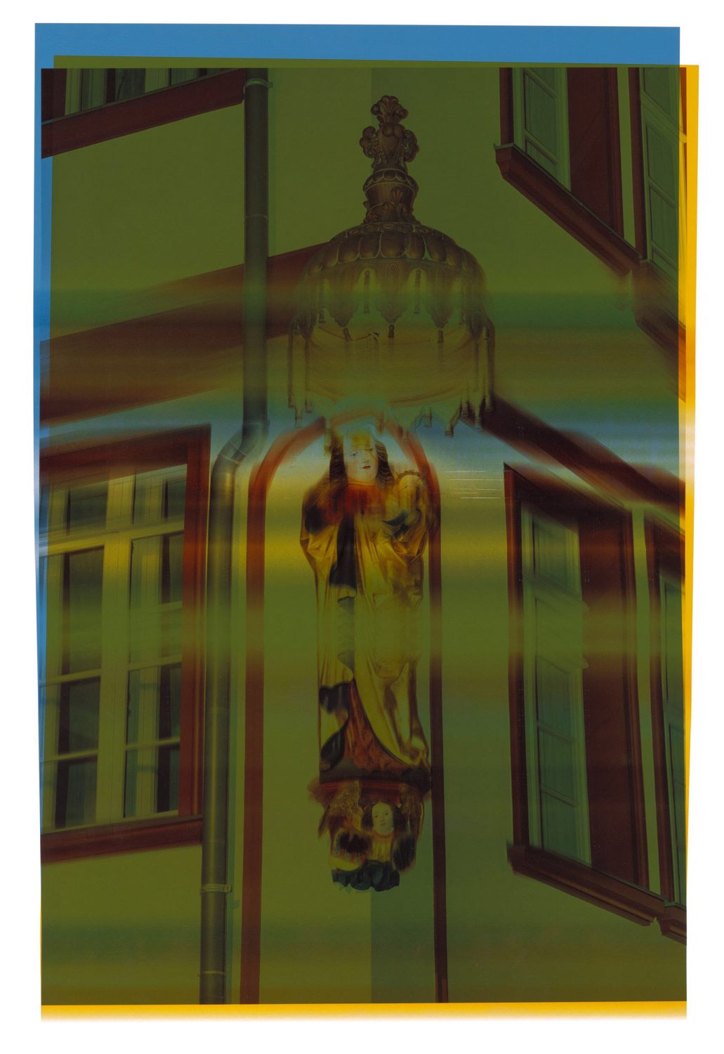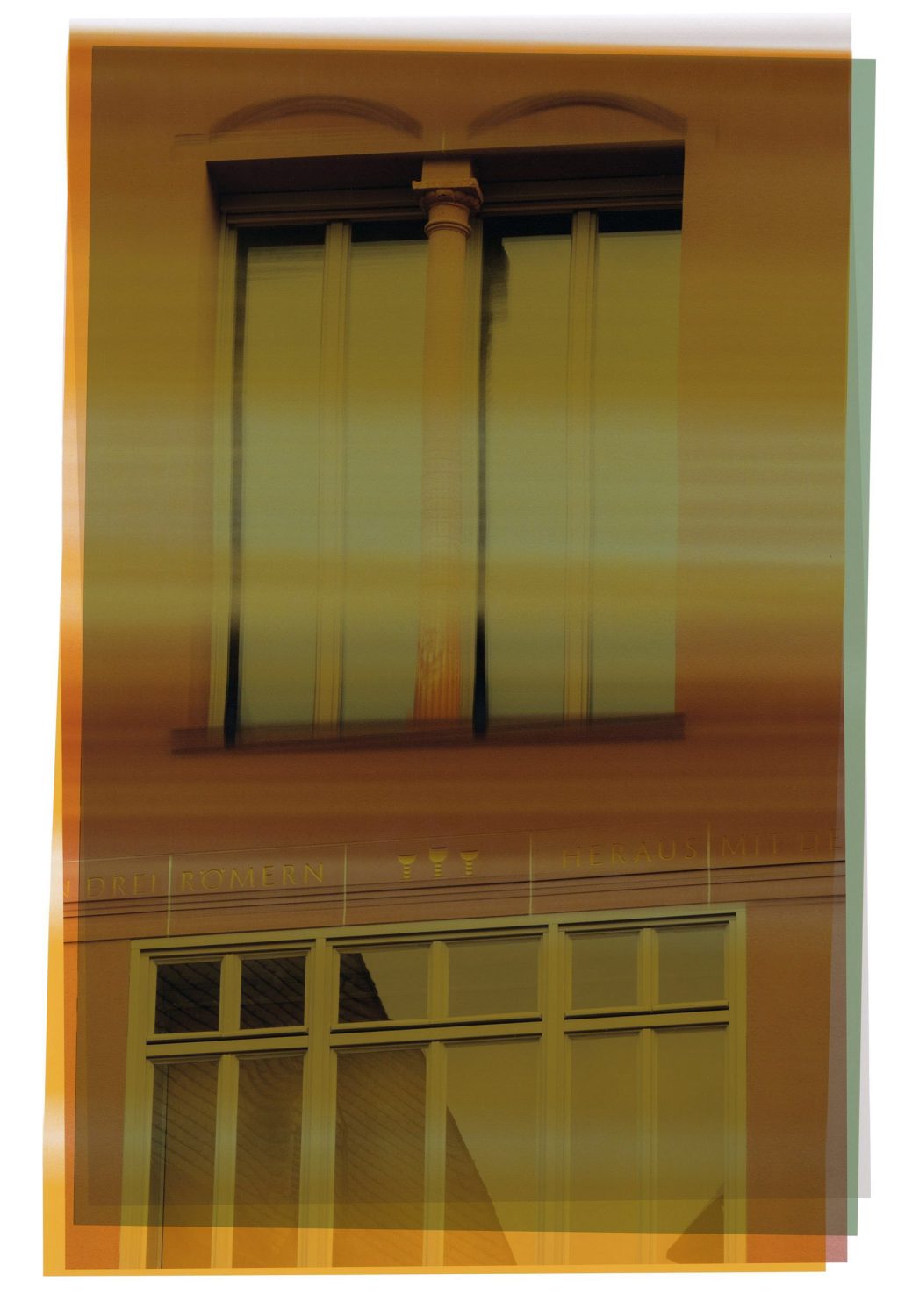 »Frankfurter Kopien« ist ein konzeptuelles Künstlerbuch, das sich der wesentlichen Gestaltungsparameter der sogenannten Neuen Frankfurter Altstadt bedient und diese weiterverwertet. Im Buch werden Fotografien aller Spolien – d.h. älterer Bauelemente, die in den Farben des sog. Farbleitplans recycelt. Dieser wurde als Anlage zur Gestaltungssatzung der Neuen Altstadt entwickelt und regelte verbindlich alle Farbwerte, die im Rahmen der Rekonstruktionen zum Einsatz kamen. Durch mehrfaches Einlegen und Überdrucken der Fotografien der Spolien mit entsprechenden Farben des jeweiligen Gebäudes entstanden über 120 »Frankfurter Kopien«. Während des Ausdruckens jeder Kopie hielt und zog der Künstler am Papier, legte es erneut ein und wiederholte dieses Prozedere nach Belieben. Bei den im Buch versammelten Bildern handelt es sich um Reproduktionen der DIN A2 großen Unikate, die durch manuelle Eingriffe in den Druckprozess entstanden. Frankfurter Kopien besteht somit aus kontingenten Abbildern, die den Prozess der beliebigen Aneignung des historischen Materials auf künstlerische Weise konsequent fortschreiben. Im Buch findet ein Auswahl der Kopien in Verbindung mit den Farben des Farbleitplans eine eigene Dramaturgie, welche durch einen abschließenden Index eine andere Lesbarkeit der Neuen Altstadt hervortreten lässt.