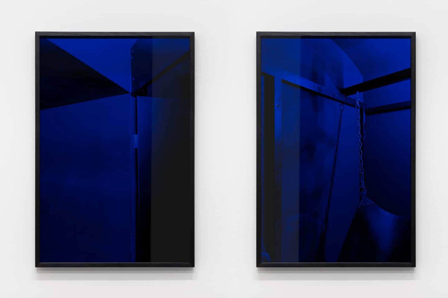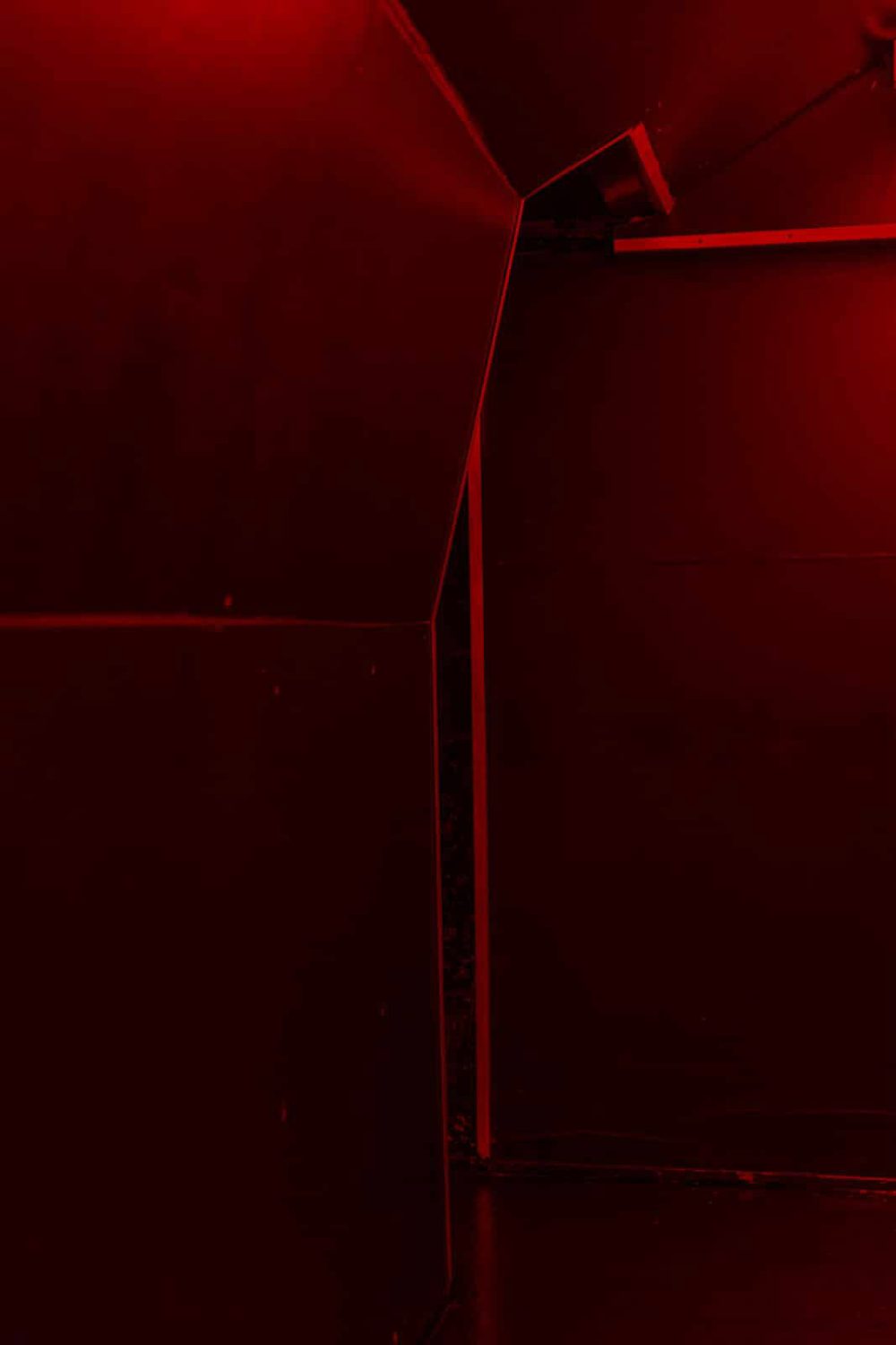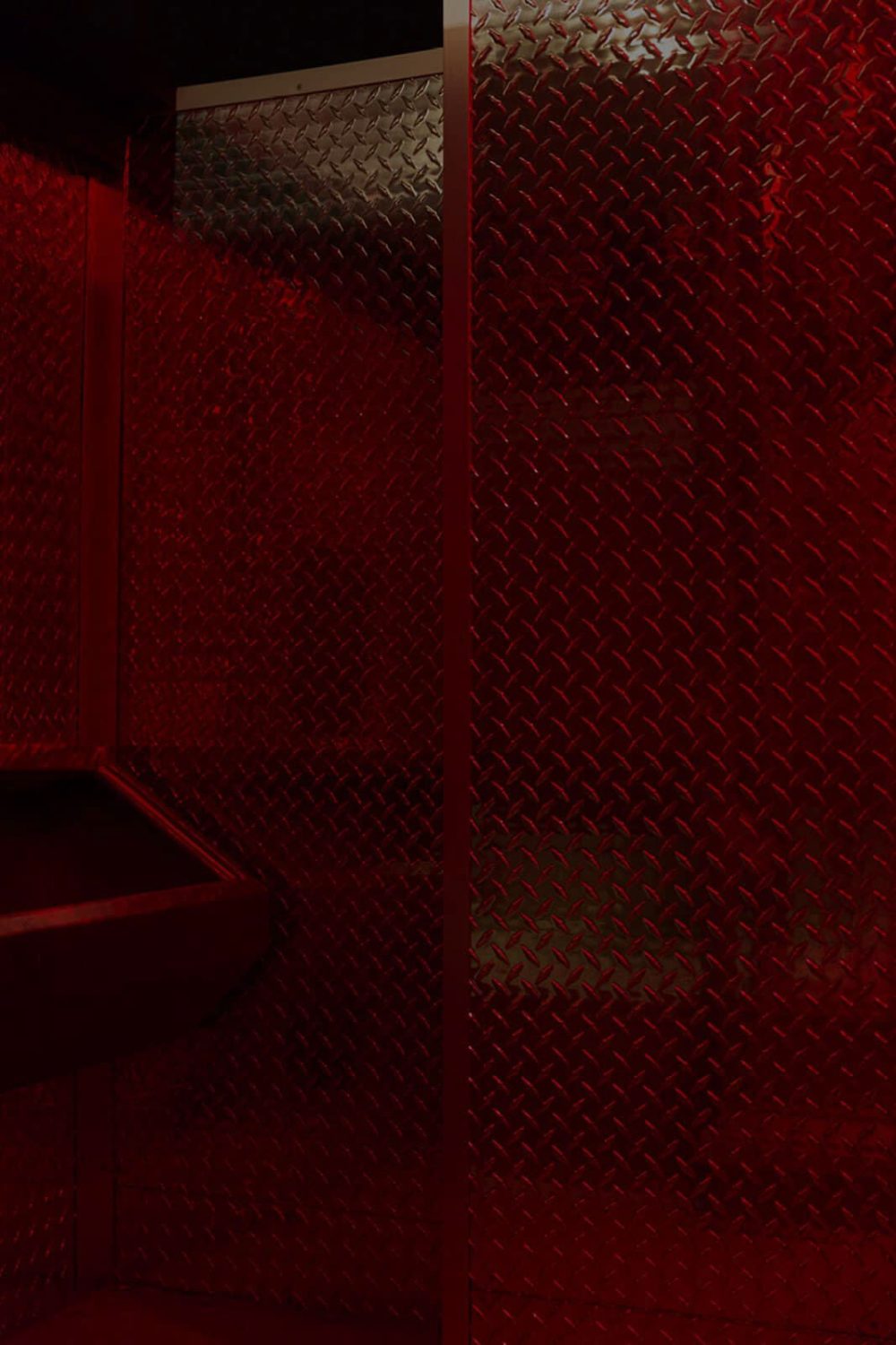 Wie sehen zeitgenössische queere Safe Spaces aus, wo sind sie zu finden und wohin verlagern sie sich? Vor dem Hintergrund dieser Fragen entwickelt Mario Kiesenhofer Fotografien, die er mit Displaymaterialen wie getöntem oder geätztem Glas schichtet, wodurch Sphären maximaler Intimität entstehen. Mit seinen fotografischen Objekten und Videoinstallationen reflektiert er die Absenz des Körpers und stellt das virtualisierte Subjekt in Frage. Seine Auseinandersetzung mit queeren Räumen und Architektur manifestiert sich in den Black Mirror-ähnlichen Fotografien der fortlaufenden Serie INDOOR, die gefilterte Einblicke in kaum zugängliche queere Sex-Clubs, Darkrooms und Gay-Saunen gewährt. Die Serie umfasst fotografische Objekte, die in Wien, New York City, Paris, Berlin, Salzburg, London, Budapest und Tokio entstanden sind. Die Fotografien werden tagsüber aufgenommen, wenn die Clubs geschlossen sind und anschließend mit grauem Glas geschichtet und gerahmt. Der dunkle Glasfilter und die dadurch kaum mehr sichtbaren Motive, verweisen auf das Verschwinden queerer Räume aus urbanen Stadtbildern. Vor dem Hintergrund der Coronavirus- Pandemie und den damit verbundenen sozialen Restriktionen wie der physischen Distanzierung und der vorübergehenden Schließung von Restaurants, Bars und Clubs, zeichnen die menschenleeren architektonischen Motive dieser Serie ein umso nachdenklicheres Bild der gegenwärtigen Leere und des Verlustes.