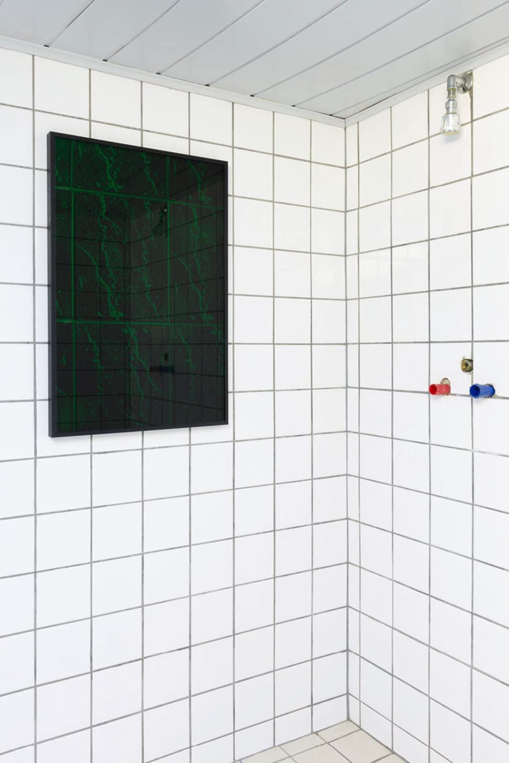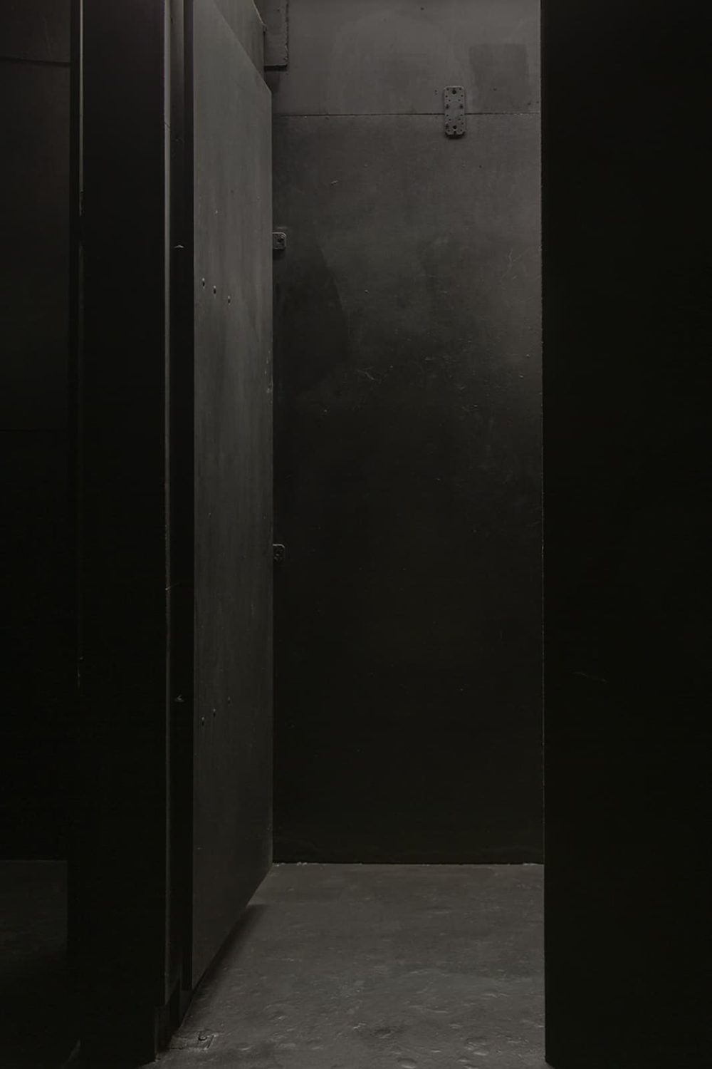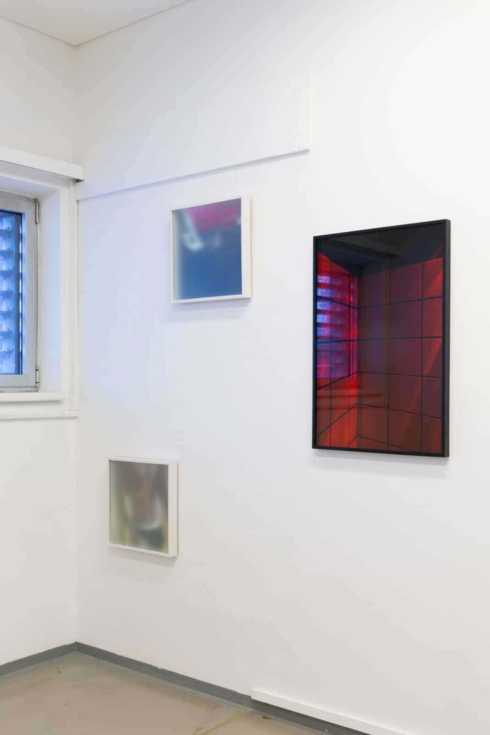 Wie sehen zeitgenössische queere Safe Spaces aus, wo sind sie zu finden und wohin verlagern sie sich? Vor dem Hintergrund dieser Fragen entwickelt Mario Kiesenhofer Fotografien, die er mit Displaymaterialen wie getöntem oder geätztem Glas schichtet, wodurch Sphären maximaler Intimität entstehen. Mit seinen fotografischen Objekten und Videoinstallationen reflektiert er die Absenz des Körpers und stellt das virtualisierte Subjekt in Frage. Seine Auseinandersetzung mit queeren Räumen und Architektur manifestiert sich in den Black Mirror-ähnlichen Fotografien der fortlaufenden Serie INDOOR, die gefilterte Einblicke in kaum zugängliche queere Sex-Clubs, Darkrooms und Gay-Saunen gewährt. Die Serie umfasst fotografische Objekte, die in Wien, New York City, Paris, Berlin, Salzburg, London, Budapest und Tokio entstanden sind. Die Fotografien werden tagsüber aufgenommen, wenn die Clubs geschlossen sind und anschließend mit grauem Glas geschichtet und gerahmt. Der dunkle Glasfilter und die dadurch kaum mehr sichtbaren Motive, verweisen auf das Verschwinden queerer Räume aus urbanen Stadtbildern. Vor dem Hintergrund der Coronavirus- Pandemie und den damit verbundenen sozialen Restriktionen wie der physischen Distanzierung und der vorübergehenden Schließung von Restaurants, Bars und Clubs, zeichnen die menschenleeren architektonischen Motive dieser Serie ein umso nachdenklicheres Bild der gegenwärtigen Leere und des Verlustes.